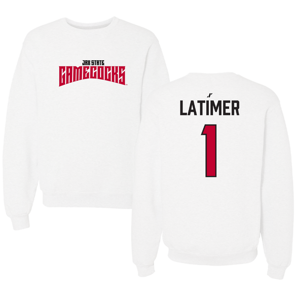 Jacksonville State University Football White Classics Crewneck - #1 Geimere Latimer