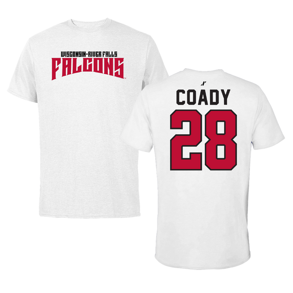 University of Wisconsin-River Falls Ice Hockey White Classic Performance Tee - #28 Gibb Coady