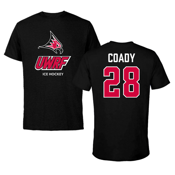 University of Wisconsin-River Falls Ice Hockey (M) Black Tee - #28 Gibb Coady
