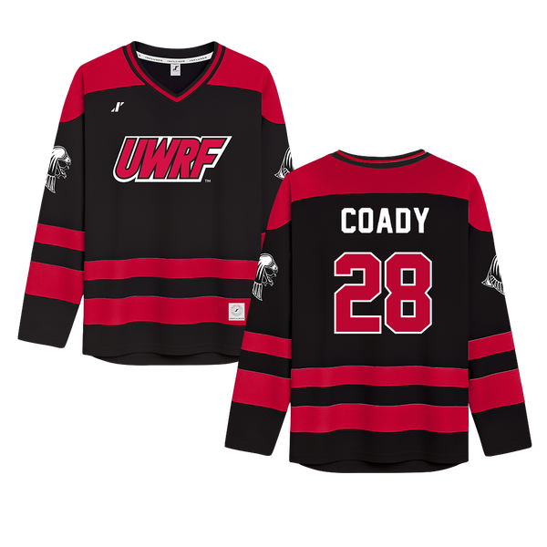 University of Wisconsin-River Falls Black Hockey Jersey - #28 Gibb Coady