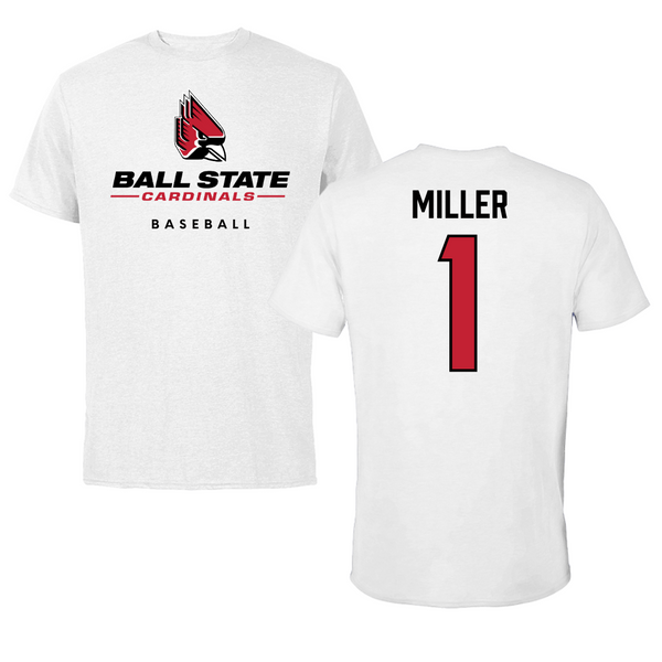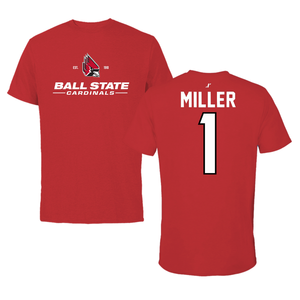 Ball State University Baseball Red General Tee - #1 Grant Miller