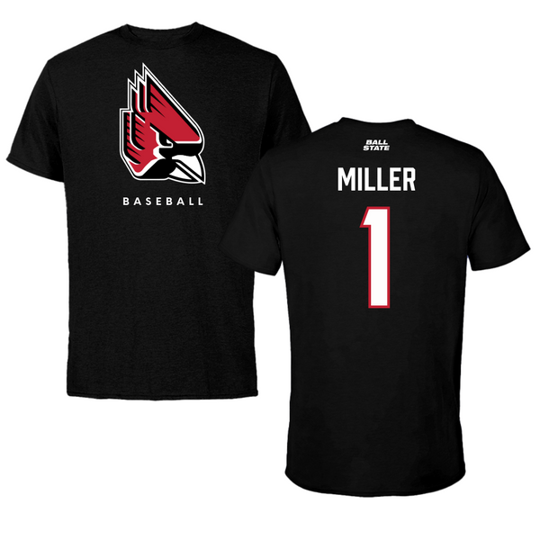 Ball State University Baseball Black Tee - #1 Grant Miller