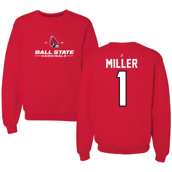 Ball State University Baseball Red General Crewneck - #1 Grant Miller