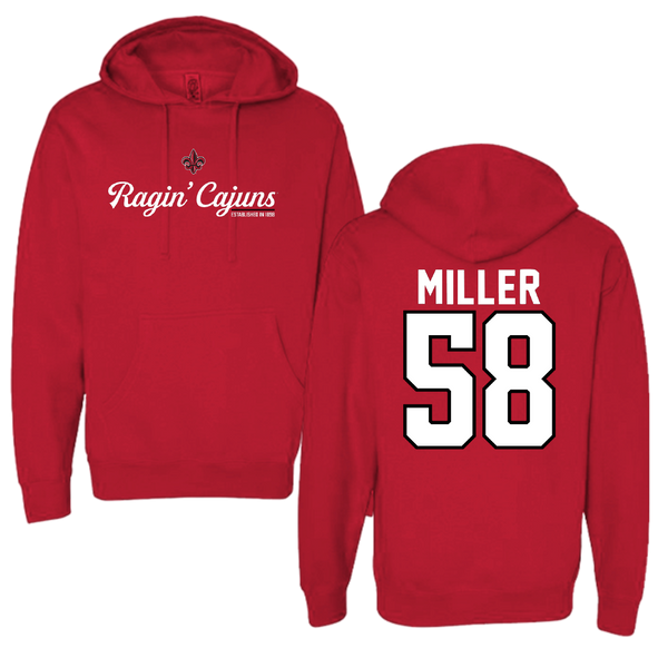 University of Louisiana at Lafayette Football Red General Hoodie - #58 Grant Miller