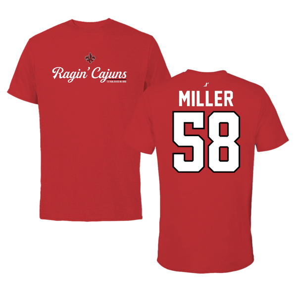University of Louisiana at Lafayette Football Red General Tee - #58 Grant Miller