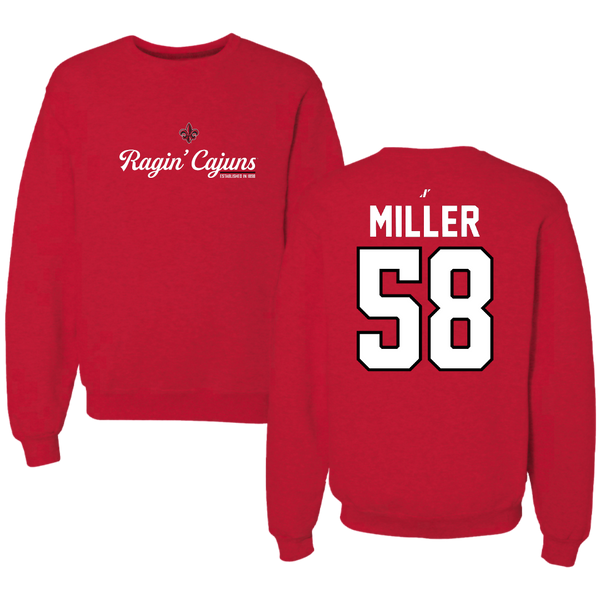 University of Louisiana at Lafayette Football Red General Crewneck - #58 Grant Miller
