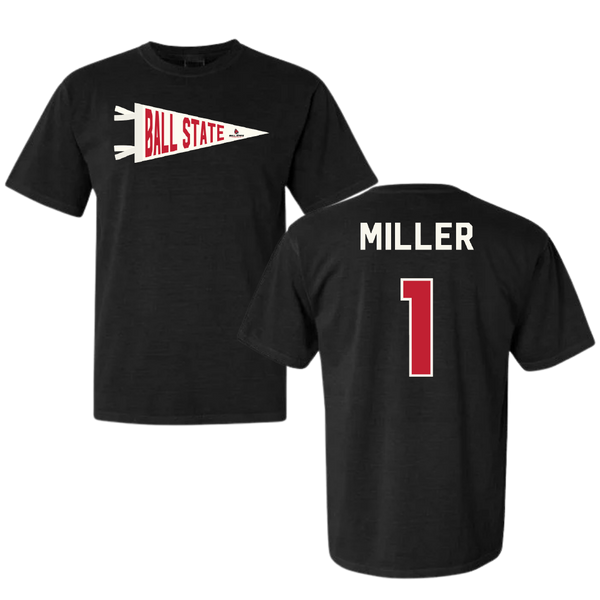 Ball State University Baseball Black Pennant Comfort Colors Tee - #1 Grant Miller