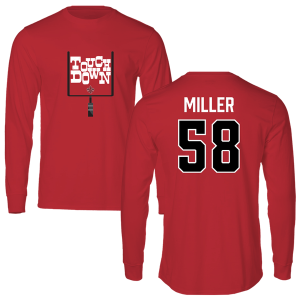 University of Louisiana at Lafayette Football Red Touchdown Long Sleeve - #58 Grant Miller