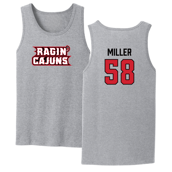University of Louisiana at Lafayette Football Sport Gray Tank Top - #58 Grant Miller