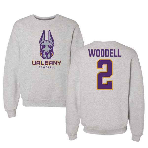 University at Albany Football Gray Crewneck - #2 Griffin Woodell