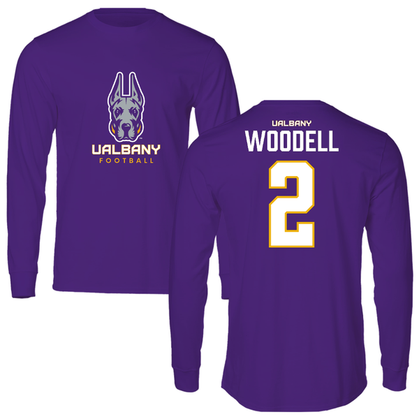 University at Albany Football Purple Touchdown Long Sleeve - #2 Griffin Woodell