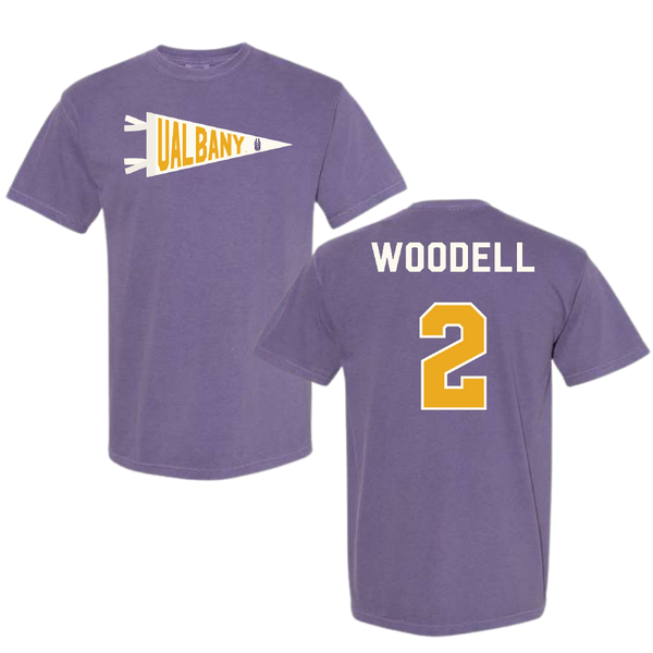 University at Albany Football Purple Pennant Comfort Colors Tee - #2 Griffin Woodell