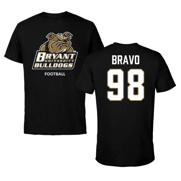 Bryant University Football Black Tee - #98 Gustavo Bravo