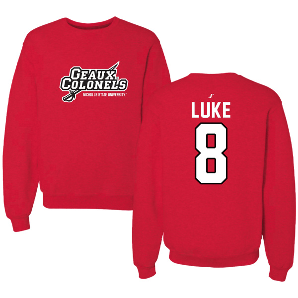 Nicholls State University Baseball Red General Crewneck - #8 Haden Luke