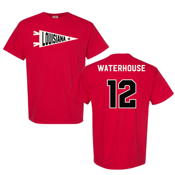 University of Louisiana at Lafayette Soccer Red Pennant Comfort Colors Tee - #12 Hailly Waterhouse