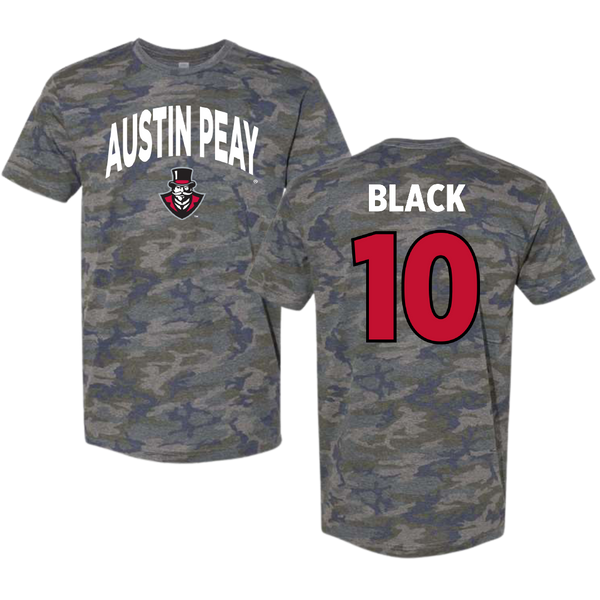 Austin Peay State University Basketball Vintage Camo Tee - #10 Harrison Black