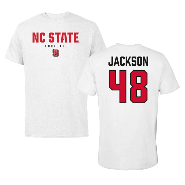 North Carolina State University Football White Tee - #48 Hunter Jackson
