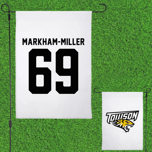 Towson University Football White Garden Flag - #69 Ian Markham-Miller