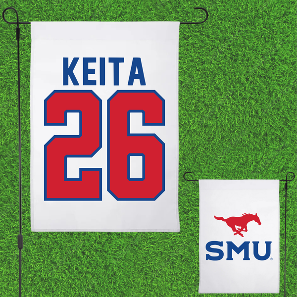 Southern Methodist University Soccer White Garden Flag - #26 Ibrahim Keita