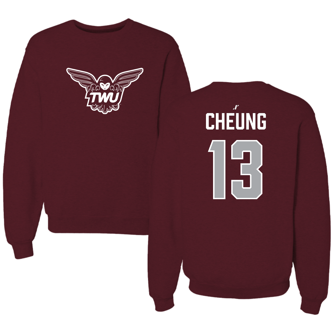 Texas Woman's University STUNT Maroon Crewneck - #13 Iris Cheung