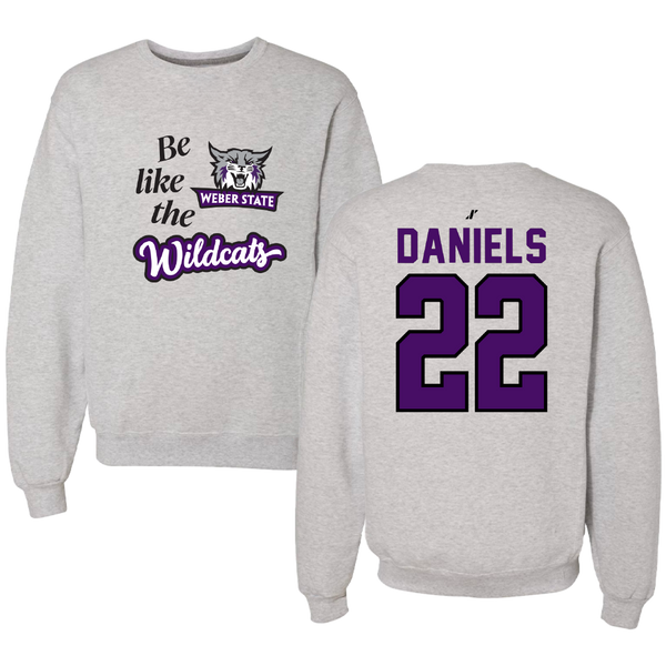 Weber State University Football Light Gray Be Like Us Crewneck - #22 Ishaan Daniels