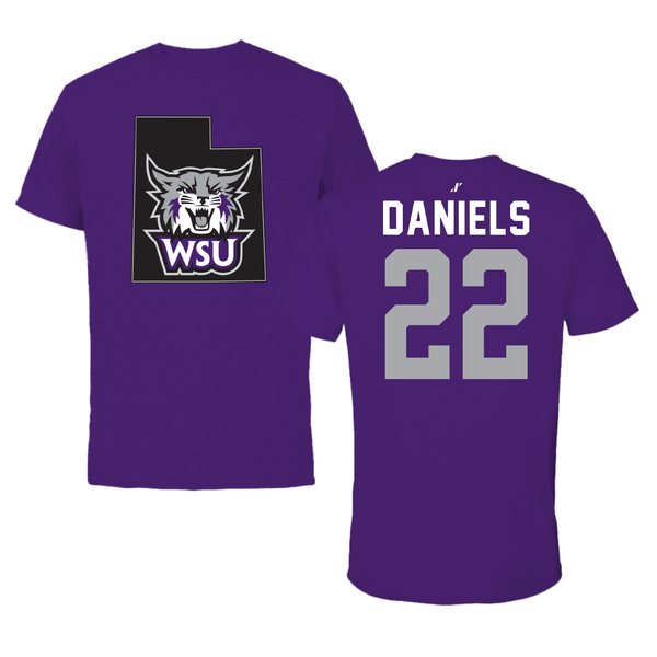 Weber State University Football Purple State Tee - #22 Ishaan Daniels