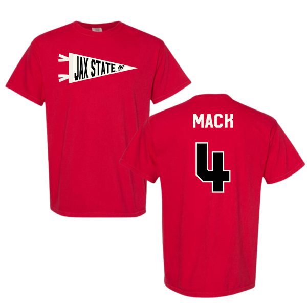 Jacksonville State University Football Red Pennant Comfort Colors Tee - #4 Jabari Mack