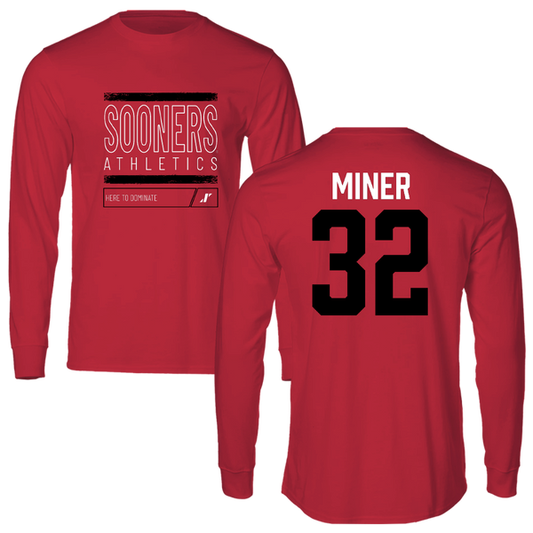 University of Oklahoma Baseball Crimson Dominate Long Sleeve - #32 Jace Miner