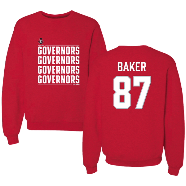 Austin Peay State University Football Red General Crewneck - #87 Jack Baker