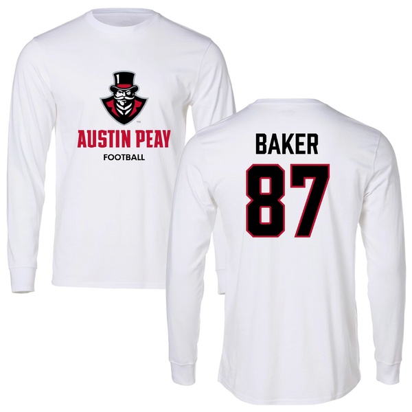 Austin Peay State University Football White Long Sleeve - #87 Jack Baker