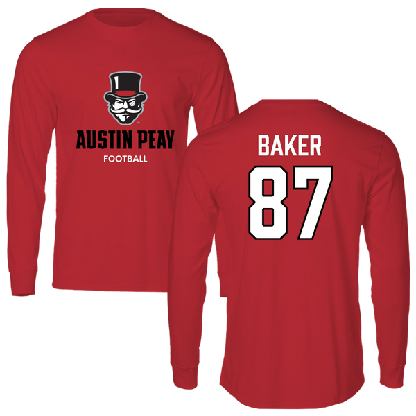 Austin Peay State University Football Red General Long Sleeve - #87 Jack Baker