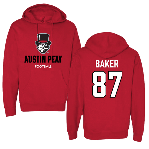 Austin Peay State University Football Red Hoodie - #87 Jack Baker