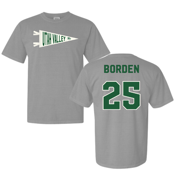 Utah Valley University Soccer Light Gray Pennant Comfort Colors Tee - #25 Jack Borden