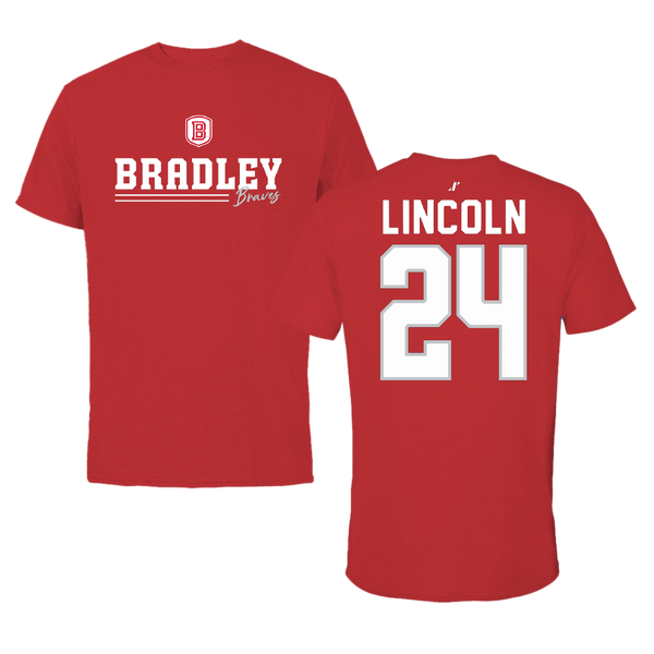 Bradley University Baseball Red General Tee - #24 Jack Lincoln