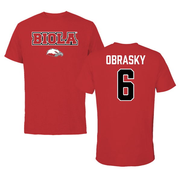Biola University Baseball Red Gameday Tee - #6 Jack Obrasky