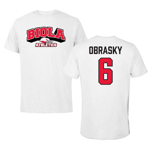 Biola University Baseball White Tee - #6 Jack Obrasky