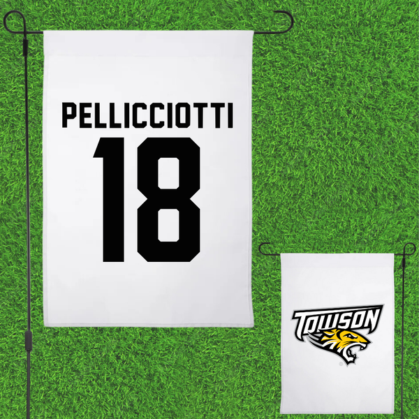 Towson University Football White Garden Flag - #18 Jack Pellicciotti