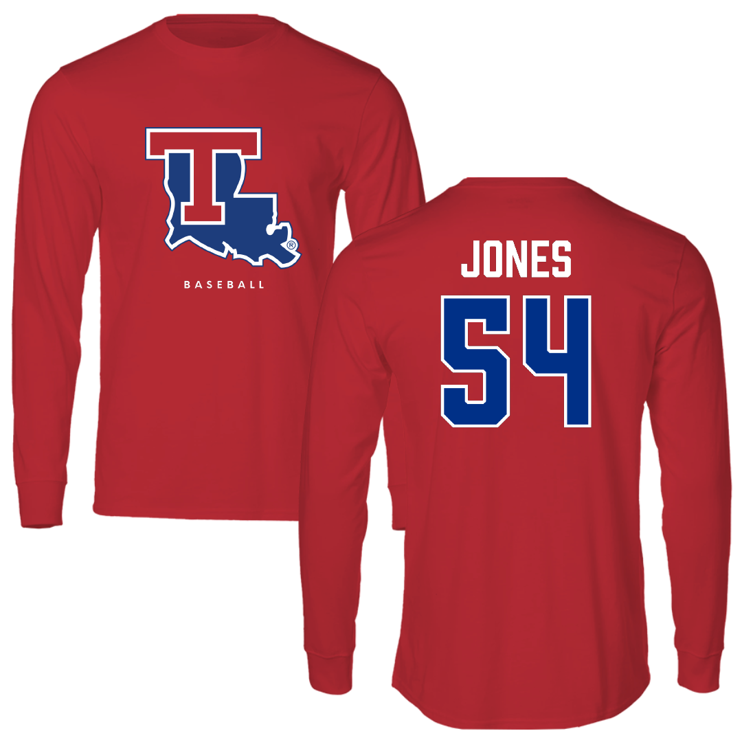 Louisiana Tech University Baseball Red Long Sleeve - #54 Jackson Jones