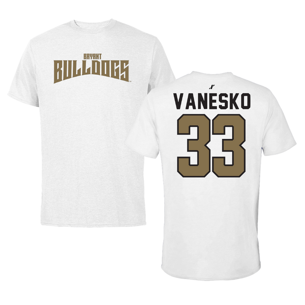 Bryant University Baseball White Tee - #33 Jackson Vanesko