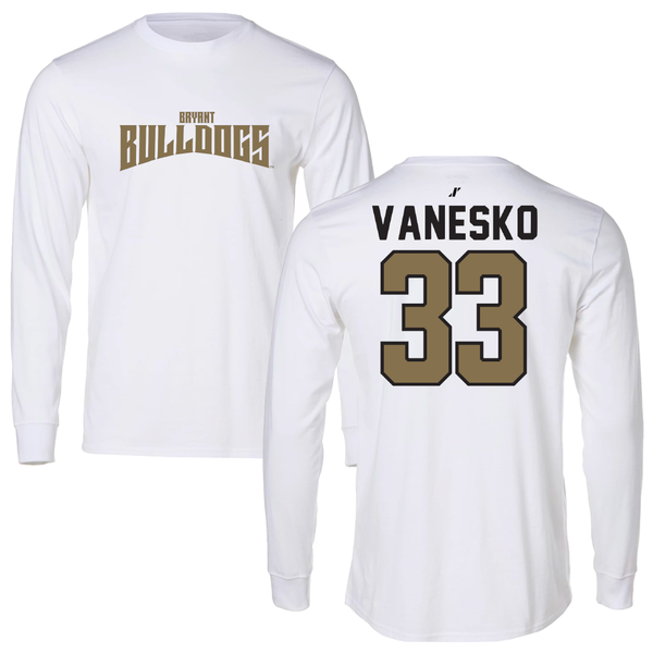 Bryant University Baseball White Classic Long Sleeve - #33 Jackson Vanesko