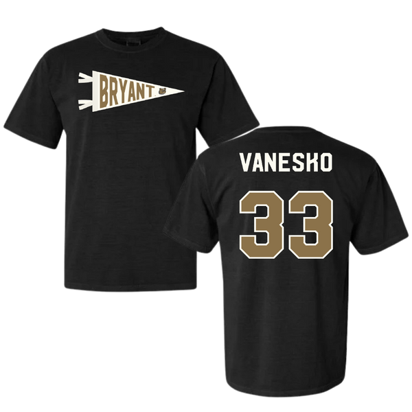 Bryant University Baseball Black Pennant Comfort Colors Tee - #33 Jackson Vanesko