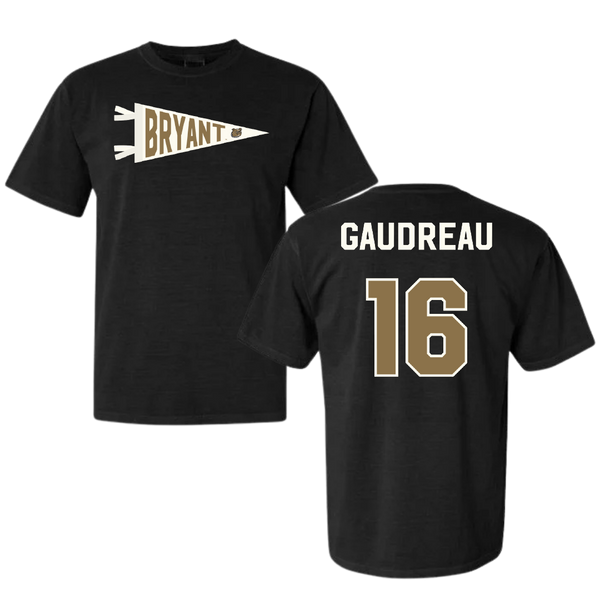 Bryant University Baseball Black Pennant Comfort Colors Tee - #16 Jacob Gaudreau