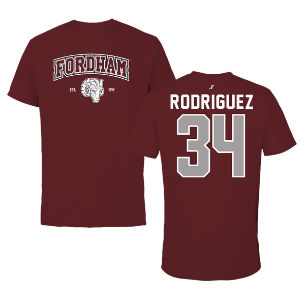 Fordham University Football Maroon General Tee - #34 Jacob Rodriguez