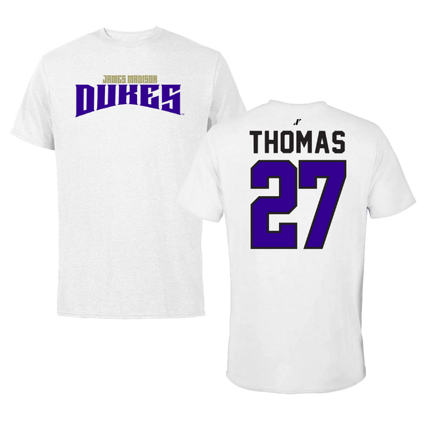 James Madison University Football White Classic Tee - #27 Jacob Thomas