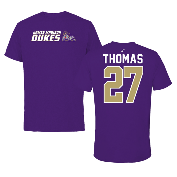 James Madison University Football Purple General Tee - #27 Jacob Thomas
