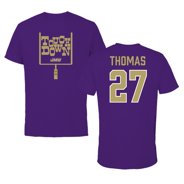 James Madison University Football Purple Touchdown Tee - #27 Jacob Thomas