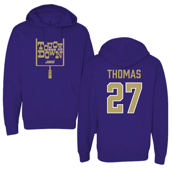 James Madison University Football Purple Touchdown Hoodie - #27 Jacob Thomas