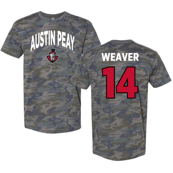 Austin Peay State University Baseball Vintage Camo Tee - #14 Jacob Weaver
