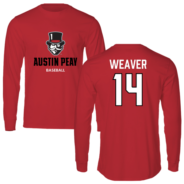 Austin Peay State University Baseball Red Mascot Long Sleeve - #14 Jacob Weaver