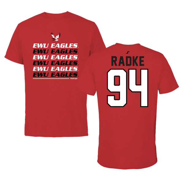 Eastern Washington University Football Red Tee - #94 Jaden Radke